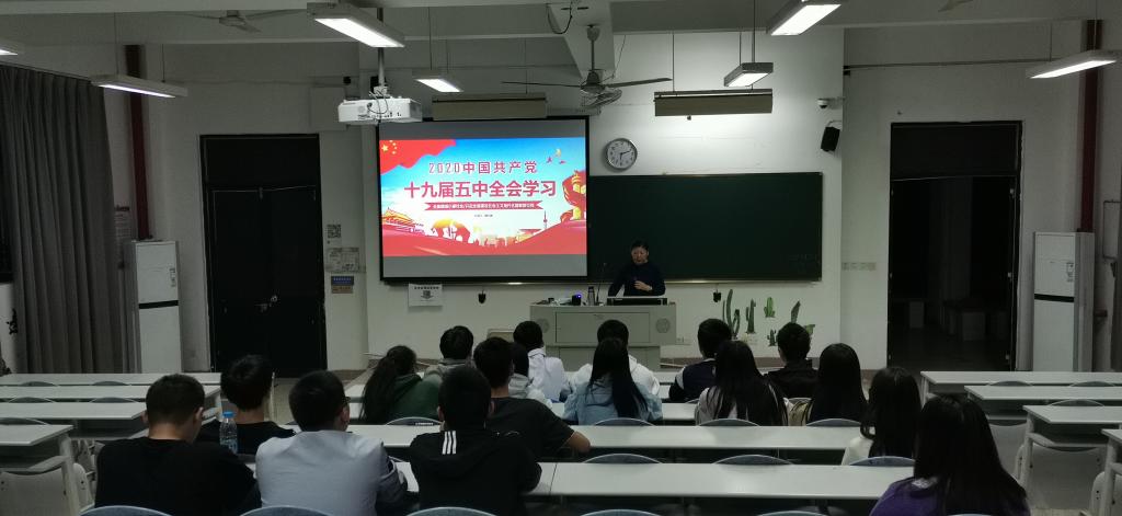為深入學(xué)習(xí)貫徹習(xí)近平新時代中國特色社會主義思想及了解全面建設(shè)社會主義現(xiàn)代化國家新征程,2020年11月10號晚讀書社夢之隊于教學(xué)樓109由指導(dǎo)老師魏立娜宣講黨的十九屆五中全會精神。