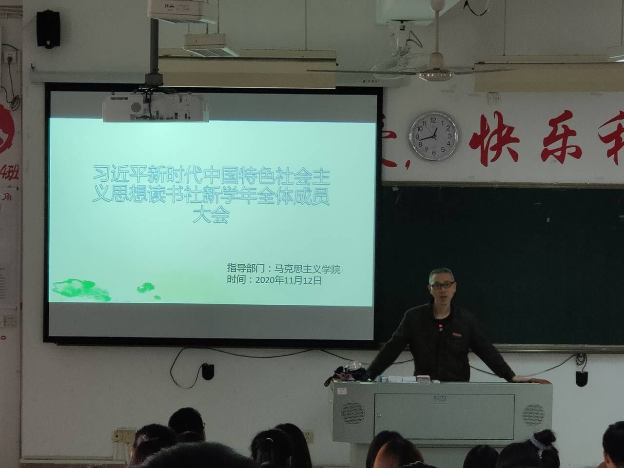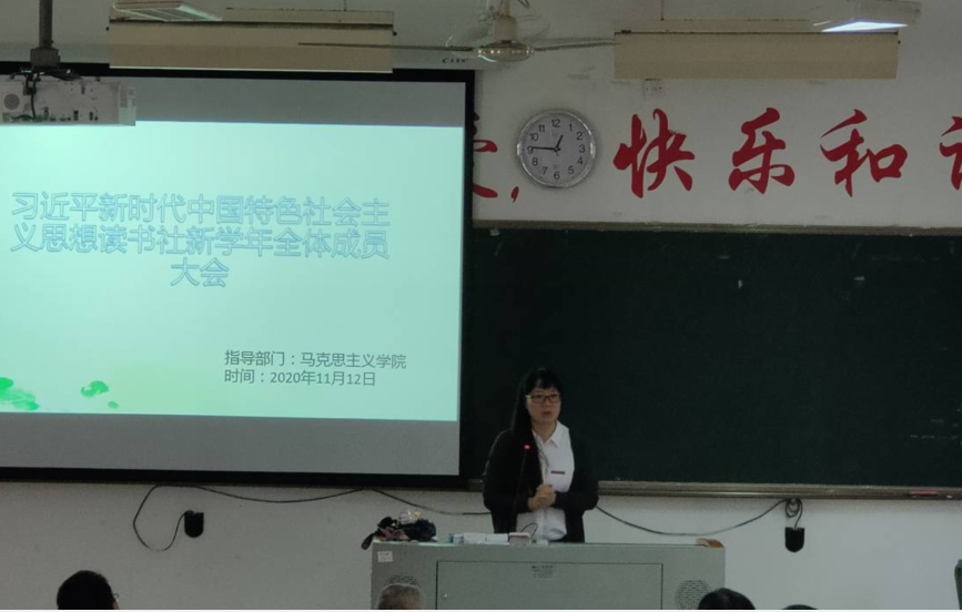 冬日迎暖陽,新思想讀書社于2020年11月12日在教學樓召開全體社員大會,讀書社19級干事、全體20級新成員約150人,與熊美蘭、胡濟林、江洪和鄭冰等指導老師。
