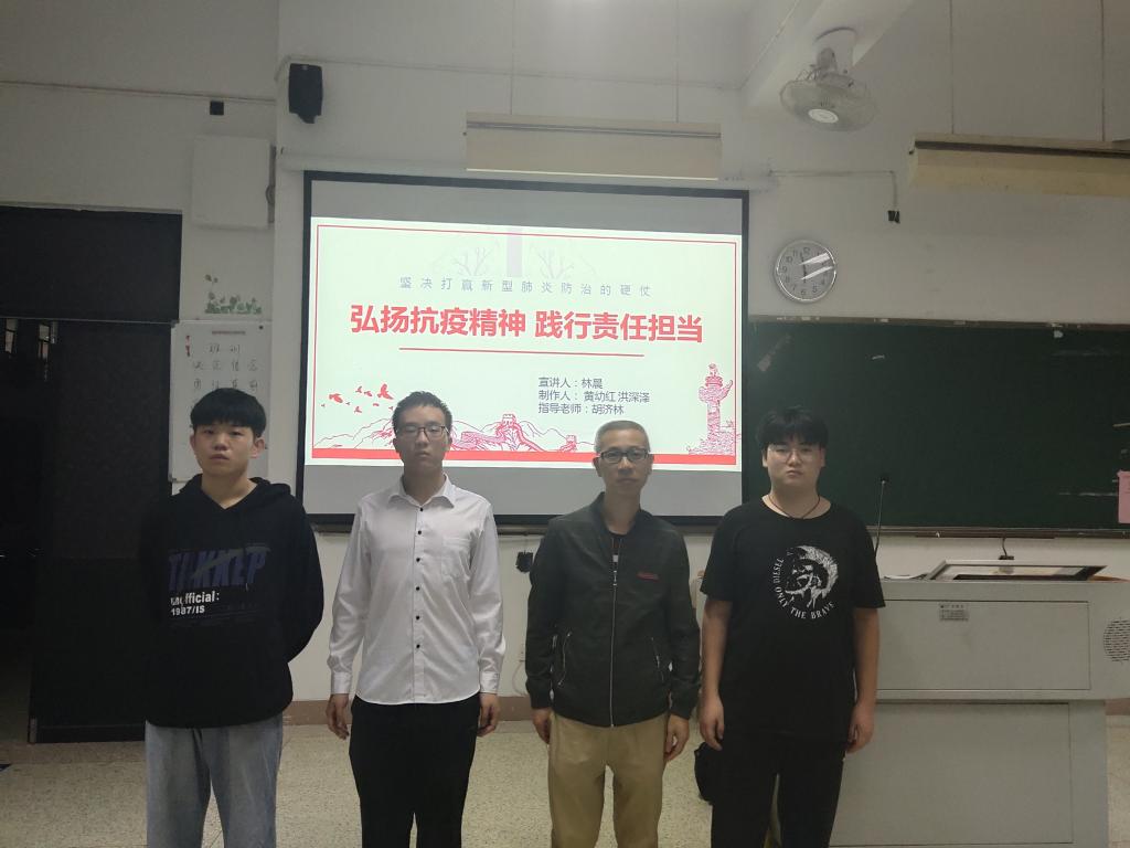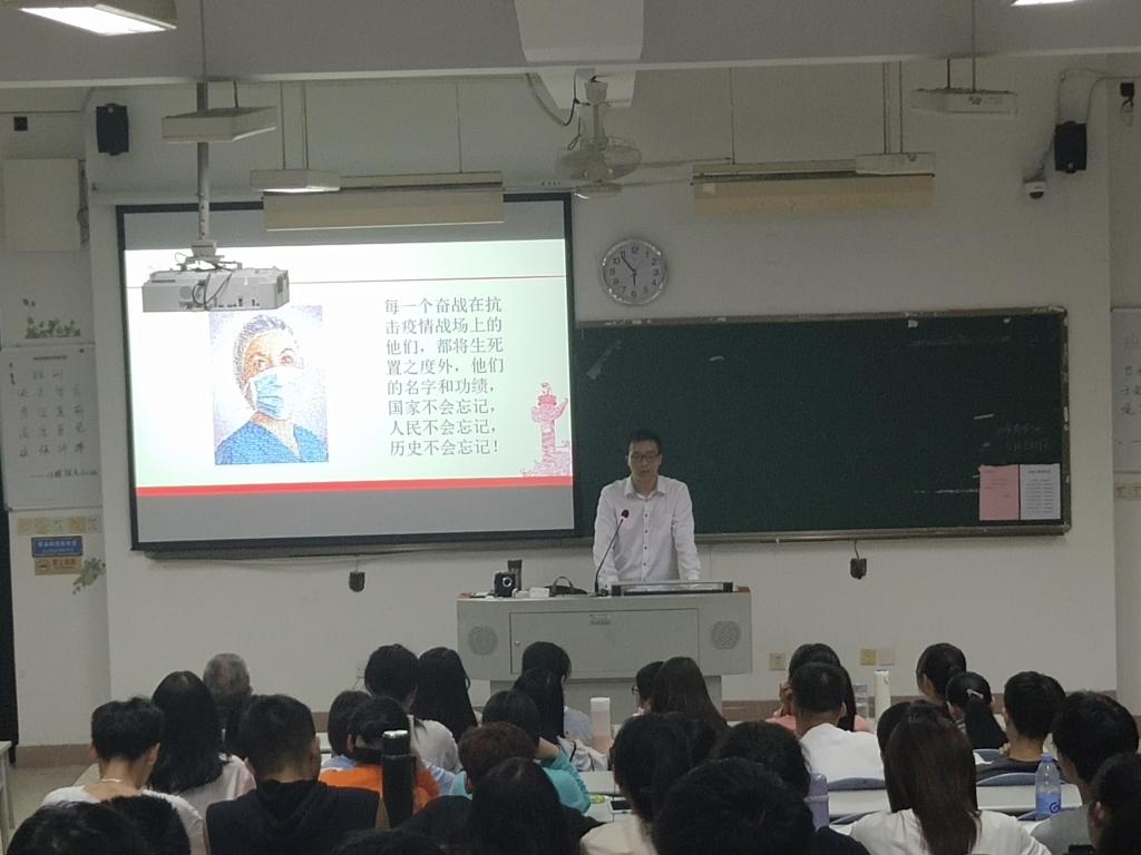 宣講中,曹倩用大量的案例向同學(xué)們解讀“共克時(shí)艱”、“共筑民族魂”、“黨員從不會缺席”、“最美中國人”等抗疫先進(jìn)事跡,林晨從“舉國同心,生命至上”、“舍生忘死,不懼犧牲”、“攜手并進(jìn),命運(yùn)與共”、“抗疫精神,中國擔(dān)當(dāng)”角度闡述偉大的抗疫精神,激起了同學(xué)們對抗疫精神的深入思考,引起了同學(xué)們的共鳴。宣講后胡濟(jì)林老師做了小結(jié),勉勵(lì)同學(xué)們深入學(xué)習(xí)偉大的抗疫精神,化抗疫精神為學(xué)習(xí)的動力和報(bào)效祖國的熱情,腳踏實(shí)地,砥礪前行。
