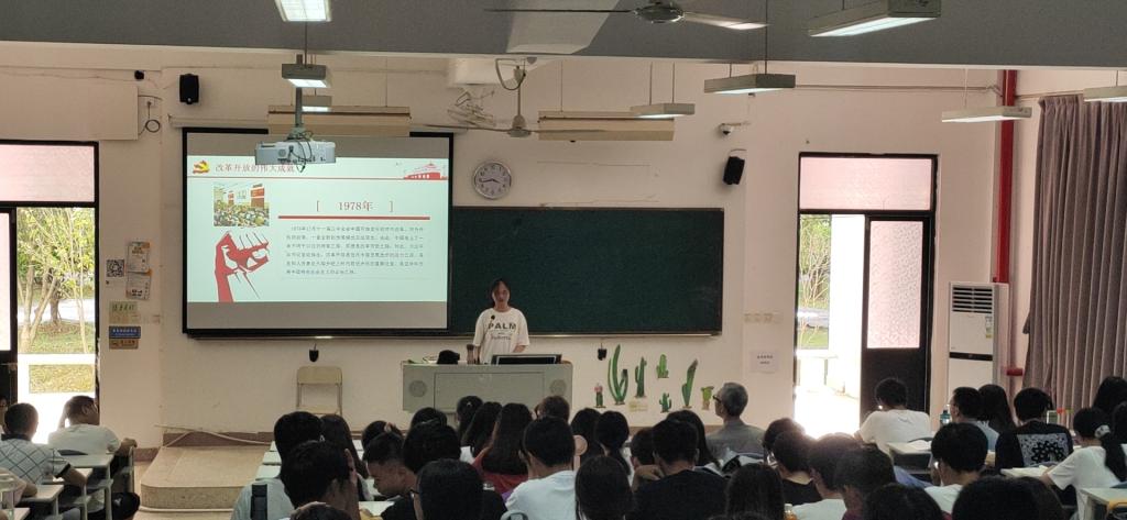 宣講人劉霏霏對改革開放的偉大成就進行了回顧,并且分析了改革開放成功的原因。她指出,改革開放是中國共產(chǎn)黨領導全國人民的偉大歷史性創(chuàng)造,更是黨的一次偉大覺醒。作為當代大學生,應該積極為中國夢的實現(xiàn)貢獻自己的力量,展現(xiàn)青年一代的智慧。之后,胡濟林老師做了精彩點評,勉勵大家增強愛國情懷,勇做改革開放的生力軍,以優(yōu)異的成績和積極的行動,投身到改革開放的偉大實踐中。