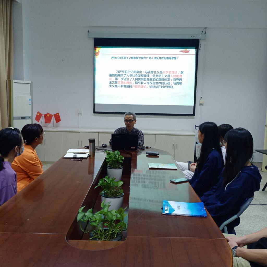 為引導(dǎo)青年學(xué)生傳承偉大建黨精神,不忘初心,勇?lián)姑?021年10月18日,習(xí)近平新時代中國特色社會主義思想讀書社宣講團(tuán)在行政樓107開展專題學(xué)習(xí)活動,胡濟(jì)林老師作《偉大建黨精神從哪來》專題宣講。