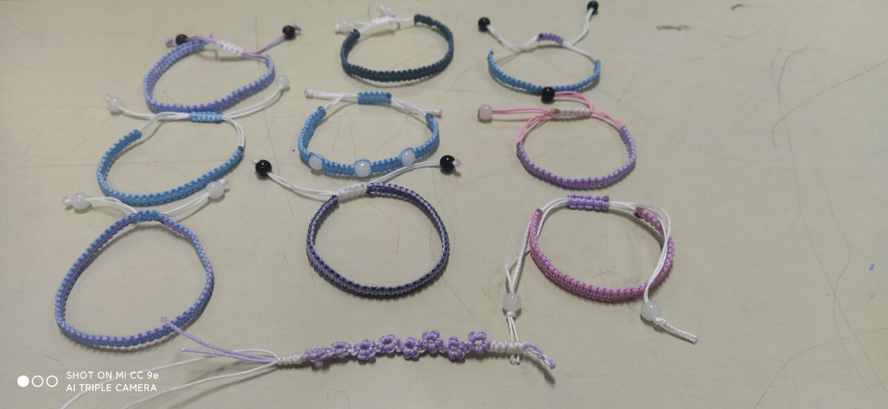 手繩編織是中國民間一類傳統(tǒng)手工藝術(shù),有獨特的中國色彩。通過將一根根彩繩結(jié)成各色手工藝品,充分體現(xiàn)了中國人民的智慧與創(chuàng)新。為進一步鍛煉同學們的動手能力,增進師生、同學間的溝通與了解,我校DIY社團于2021年11月21日開展“情系于繩,溫暖相牽”手繩編織活動。