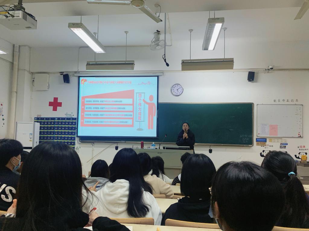 宣講主要圍繞黨的百年奮斗的輝煌成就和歷史經(jīng)驗(yàn)對(duì)黨的十九屆六中全會(huì)精神作了解讀,強(qiáng)調(diào)從“開(kāi)天辟地”的浴血奮戰(zhàn)、百折不撓,到“改天換地”的自力更生、發(fā)憤圖強(qiáng),到“翻天覆地”的解放思想、銳意進(jìn)取,再到“驚天動(dòng)地”的自信自強(qiáng)、守正創(chuàng)新,黨的領(lǐng)導(dǎo)始終是黨和國(guó)家的根本所在、命脈所在,并鼓勵(lì)同學(xué)們要深入學(xué)習(xí)貫徹黨的十九屆六中全會(huì)精神,深刻把握黨的百年奮斗重大成就和歷史經(jīng)驗(yàn),在歷史中汲取智慧和力量,在學(xué)習(xí)中堅(jiān)定信仰和信念,在奮進(jìn)中牢記初心和使命,爭(zhēng)當(dāng)新時(shí)代有作為的大學(xué)生。