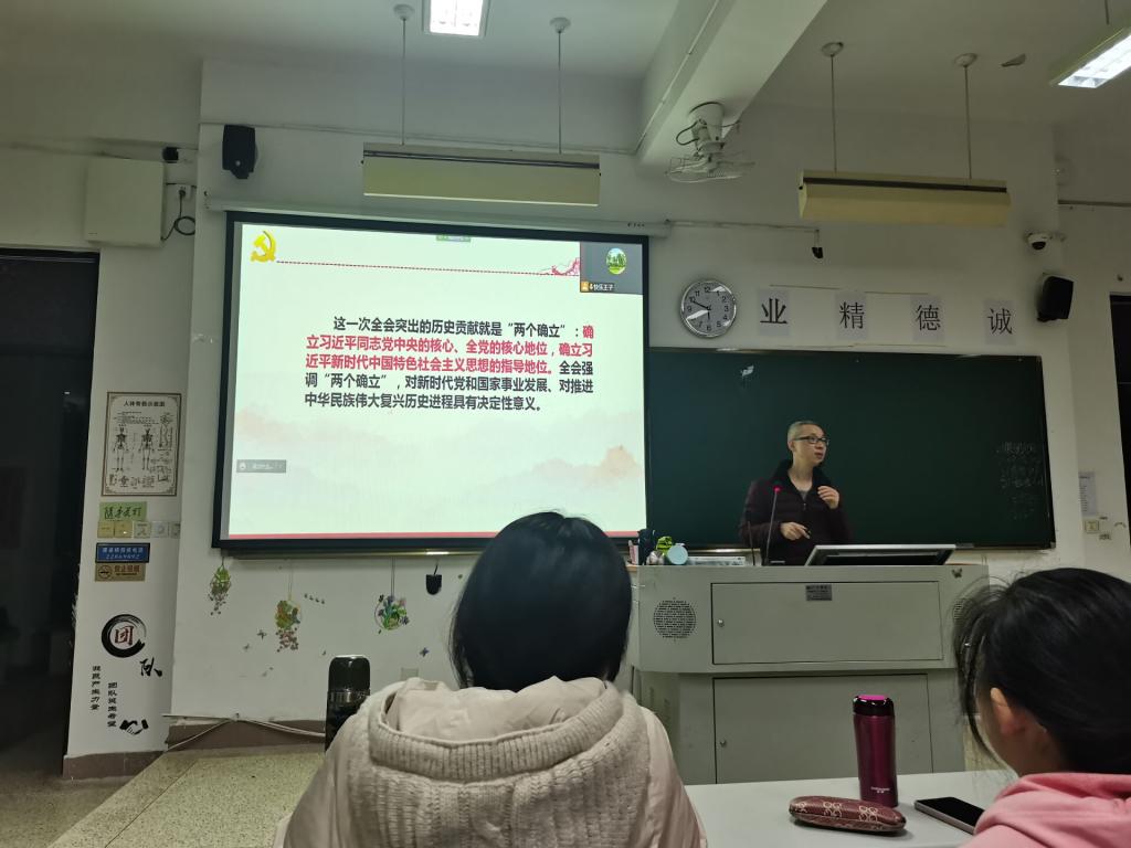 講座分兩個(gè)場(chǎng)地同時(shí)進(jìn)行,教學(xué)樓109為主講會(huì)場(chǎng),約160名學(xué)生現(xiàn)場(chǎng)聆聽,教學(xué)樓111為分會(huì)場(chǎng),約100名學(xué)生通過(guò)騰訊會(huì)議觀看講座。此次講座資料詳實(shí),內(nèi)容豐富,講授形象生動(dòng),同學(xué)們受益匪淺。大家深刻領(lǐng)會(huì)到學(xué)習(xí)黨的十九屆六中全會(huì)精神的重大意義,加深了對(duì)黨的認(rèn)識(shí)與理解,認(rèn)識(shí)到了新中國(guó)的來(lái)之不易、中國(guó)特色社會(huì)主義來(lái)之不易,更加堅(jiān)定走中國(guó)特色社會(huì)主義道路的決心,更加堅(jiān)定、更加自覺地踐行初心使命,在新時(shí)代更好堅(jiān)持和發(fā)展中國(guó)特色社會(huì)主義。