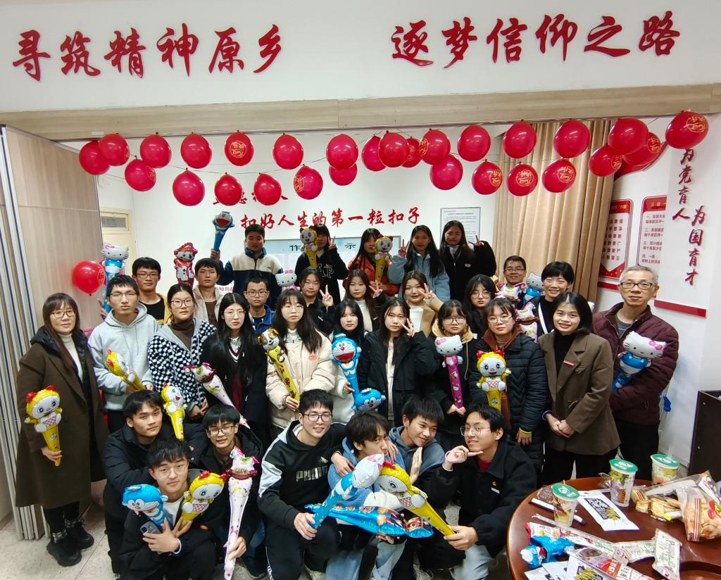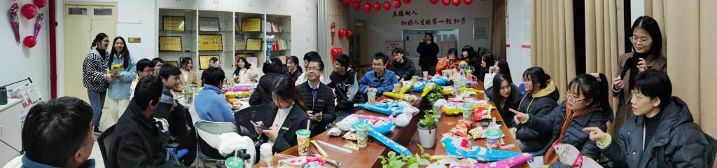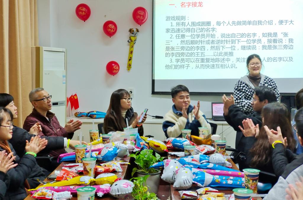 為了增進交流,促進友誼,2021年12月30日,習近平新時代中國特色社會主義思想讀書社(以下簡稱“讀書社”)舉辦迎2022新年暨團建活動。熊美蘭、胡濟林、江洪、鄭冰和羅蕓等指導老師及讀書社全體成員,在行政樓107齊聚一堂,歡度美好時光。