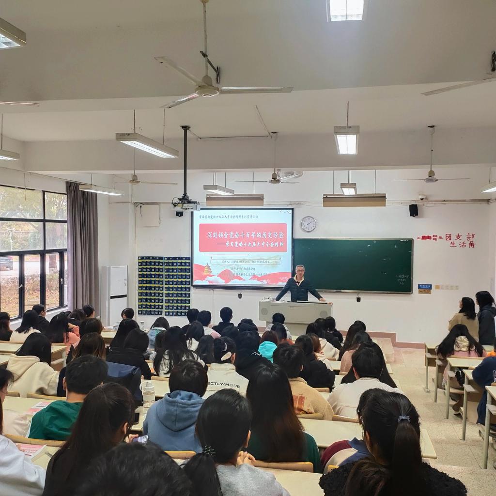 2022年1月7日,習(xí)近平新時(shí)代中國(guó)特色社會(huì)主義思想讀書(shū)社宣講團(tuán)在胡濟(jì)林老師的組織下,到教學(xué)樓111為21藥產(chǎn)301、302班開(kāi)展“深刻領(lǐng)會(huì)黨百年奮斗的歷史經(jīng)驗(yàn)”專題宣講。