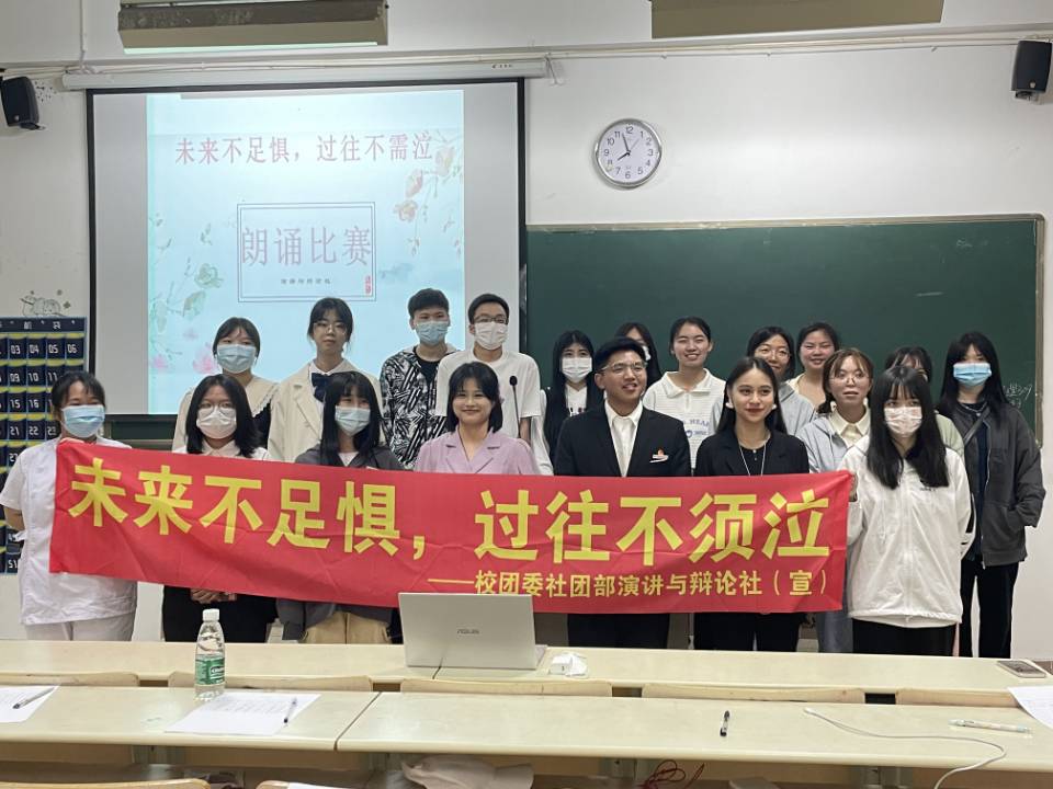 本次朗誦比賽,在來朋珍、徐舒寧老師的帶領下,各個干事都以飽滿認真的態(tài)度進行了一系列的活動策劃,面向學院全體學生以宣傳語進行宣傳,并為參賽同學們提供了優(yōu)質的服務。在比賽期間,老師給各個參賽選手給出了中肯的評分。在指導老師的指導以及社團干事的共同努力下,演講與辯論社的誦讀比賽取得圓滿成功。