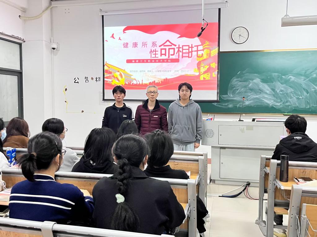“健康所系,性命相托。”這是中國醫(yī)學(xué)生誓詞的首句。為了進(jìn)一步學(xué)習(xí)貫徹黨的二十大精神,弘揚(yáng)偉大的抗疫精神,2022年12月12日下午,習(xí)近平新時(shí)代中國特色社會(huì)主義思想讀書社宣講團(tuán)在胡濟(jì)林老師的組織下,在教學(xué)樓513為22護(hù)理303、304班開展線下宣講交流。