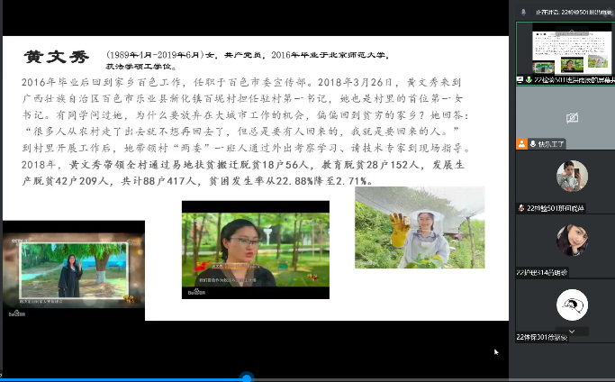 在胡濟林報告結(jié)束后,由何曉萍同學(xué)匯報《民族泱泱百業(yè)青年翻涌明朝》,洪雨辰同學(xué)匯報《我以我手執(zhí)新筆我以我心繪前程》,兩位同學(xué)講述內(nèi)容豐富,語言連貫,都圍繞學(xué)習(xí)貫徹黨的二十大精神來展開,但側(cè)重點略有不同。匯報結(jié)束后,同學(xué)們進行了本次學(xué)習(xí)的交流分享。