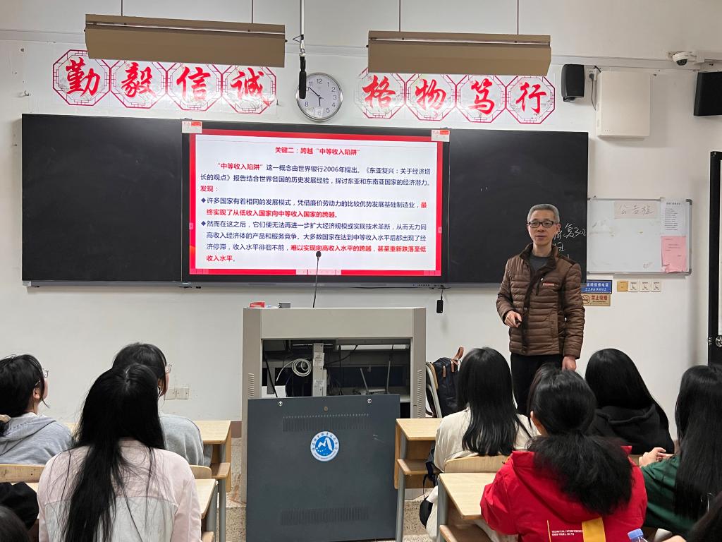 在全國兩會上,習近平總書記多次發(fā)表重要講話,強調要著力推動高質量發(fā)展。為了更好地學習貫徹全國兩會精神,2023年3月21日,胡濟林副教授在教學樓103為習近平新時代中國特色社會主義思想讀書社青春隊開展“中國式現(xiàn)代化與高質量發(fā)展”的專題報告。