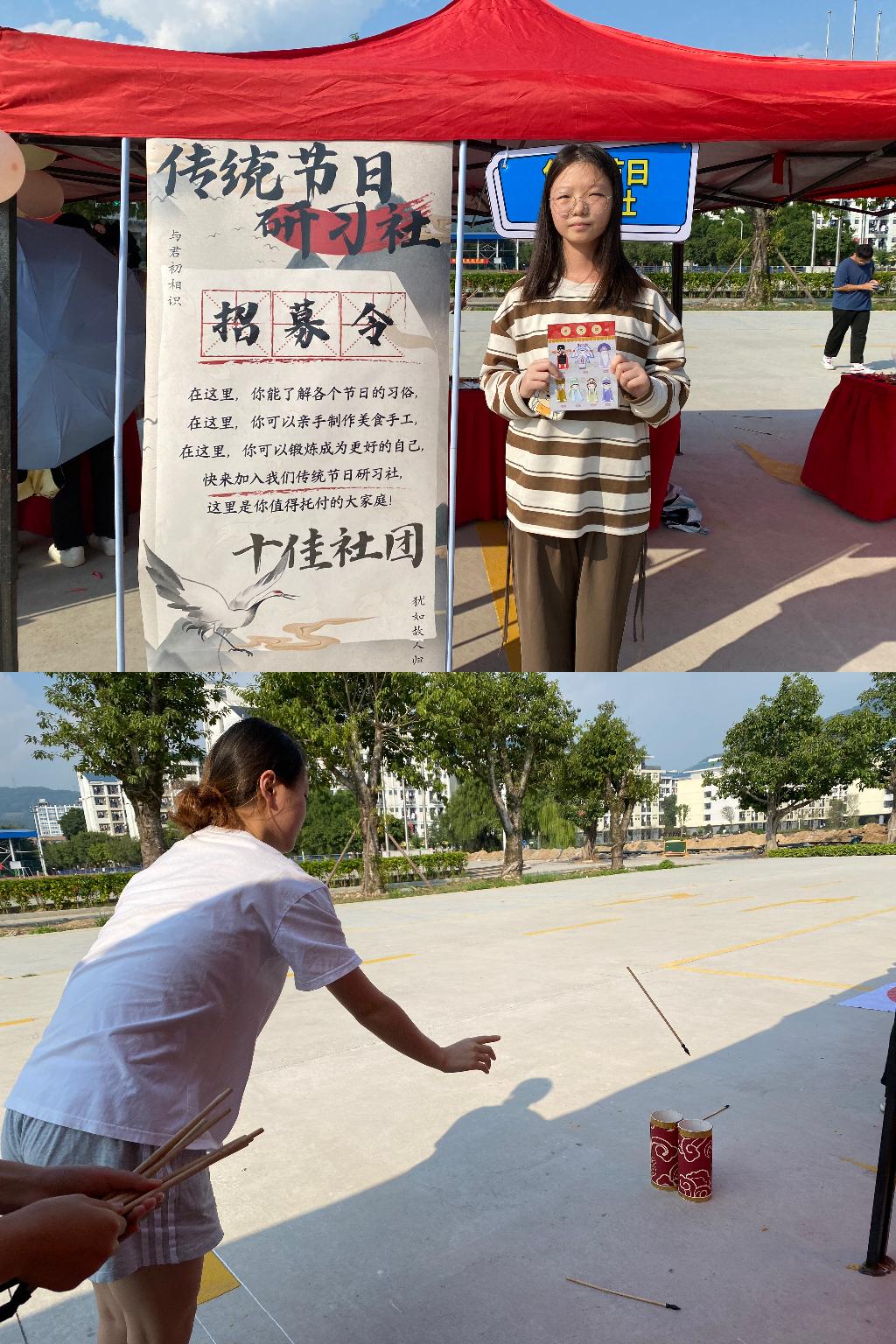 2023年10月15日,傳統(tǒng)節(jié)日研習(xí)社成功舉辦了一年一度的“游園會(huì)”暨納新活動(dòng)。在游園會(huì)活動(dòng)中,各個(gè)社團(tuán)各展所長(zhǎng),嗨翻全場(chǎng)的表演節(jié)目,各具特色的社團(tuán)小游戲,令人目不暇接。