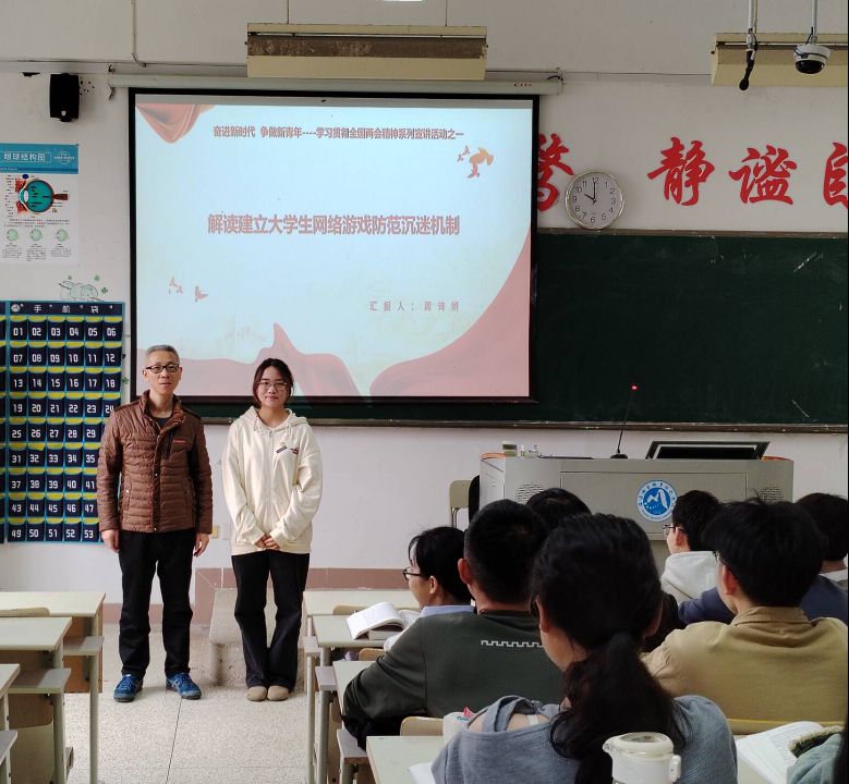 在今年全國(guó)兩會(huì)召開期間,人大代表陳志列提出建立大學(xué)生防沉迷游戲機(jī)制。新思想讀書社宣講團(tuán)成員緊抓時(shí)事緊跟熱點(diǎn)。2024年3月27日,習(xí)近平新時(shí)代中國(guó)特色社會(huì)主義思想讀書社宣講團(tuán)成員在胡濟(jì)林老師的組織下,到教學(xué)樓114為23中藥學(xué)301、302班的同學(xué)們開展線下宣講交流。
