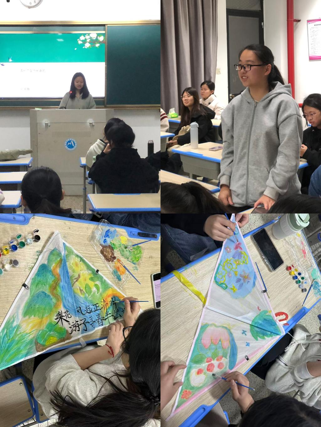 活動現(xiàn)場,社團(tuán)成員準(zhǔn)備了與清明習(xí)俗、紙鳶文化相關(guān)的題目開展知識競賽。同學(xué)們積極搶答,現(xiàn)場氣氛熱烈。答題環(huán)節(jié)結(jié)束后,大家拿起畫筆,在紙鳶上盡情創(chuàng)作。櫻花、柳枝等春日元素紛紛在紙鳶上呈現(xiàn)。