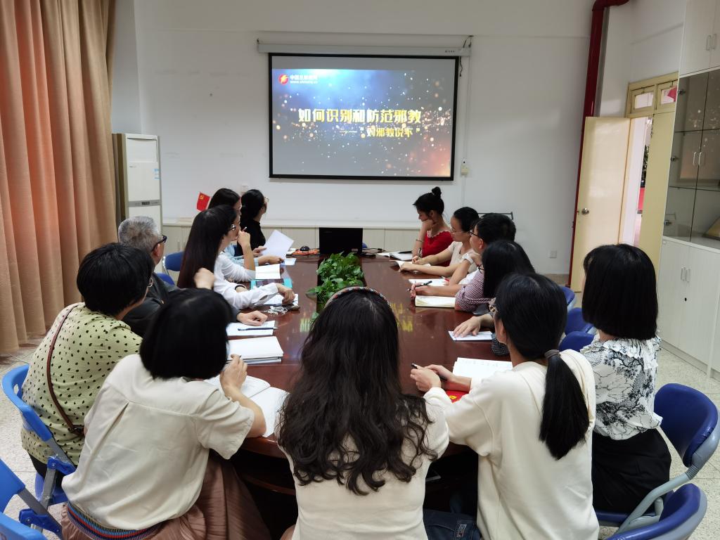最后,支部書記熊美蘭強(qiáng)調(diào),要認(rèn)清邪教的本質(zhì),在思想上筑起防線,堅(jiān)決抵制邪教;對(duì)邪教的各類宣傳,要做到不聽、不信、不傳;如發(fā)現(xiàn)邪教組織活動(dòng),要積極向公安機(jī)關(guān)舉報(bào);要積極在學(xué)生中開展反邪教教育宣傳活動(dòng),充分發(fā)揮課堂主陣地的作用。