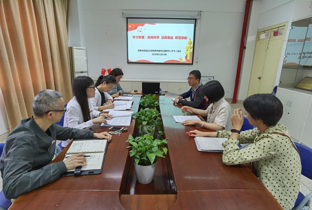 11月19日下午,直屬馬克思主義學院黨支部在行政樓107會議室召開中心組學習(擴大)會議,開展“崇尚科學 遠離病毒 防范邪教”專題學習。本次會議由直屬馬克思主義學院黨支部書記熊美蘭主持,支部全體委員及各教研室主任參加了會議。