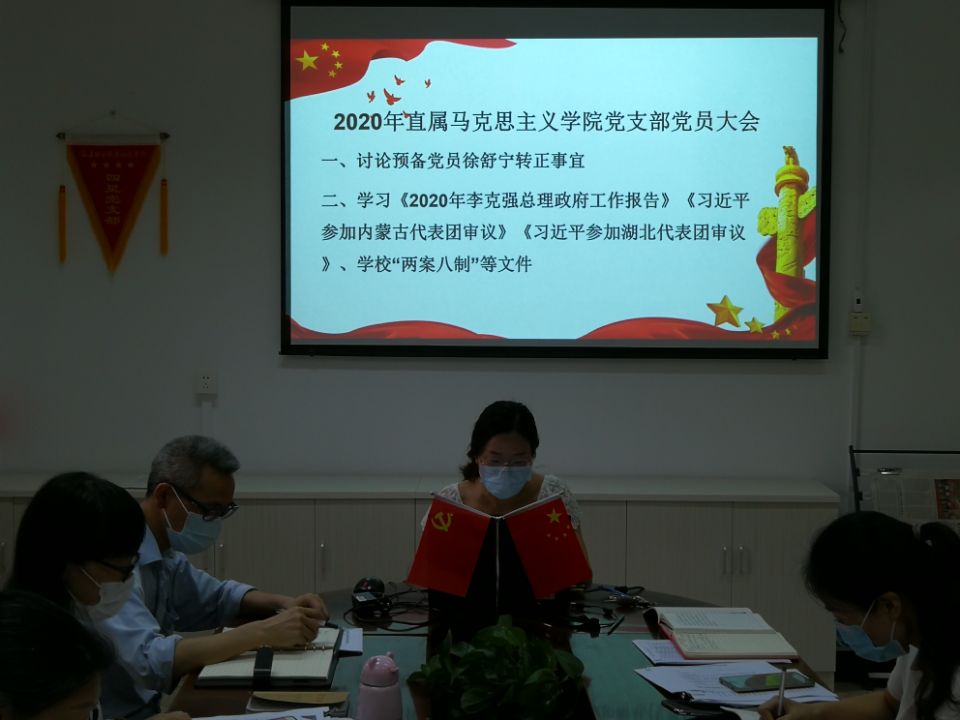 2020年6月4日,直屬馬克思主義學(xué)院召開黨支部黨員大會(huì),會(huì)議由馬克思主義學(xué)院熊美蘭書記主持。本次黨員大會(huì)包括:討論徐舒寧同志預(yù)備黨員轉(zhuǎn)正事宜、黨員政治學(xué)習(xí)。