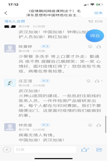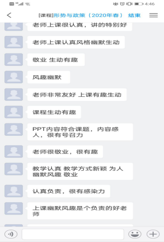 網(wǎng)絡(luò)思政課既有文字,有圖片,也有互動,還有專家視頻,收到較好的教學(xué)效果,學(xué)生反饋到:喜歡網(wǎng)上教學(xué)、課程生動有趣、老師及時在線解答,并對老師們認(rèn)真教學(xué)表示敬意。