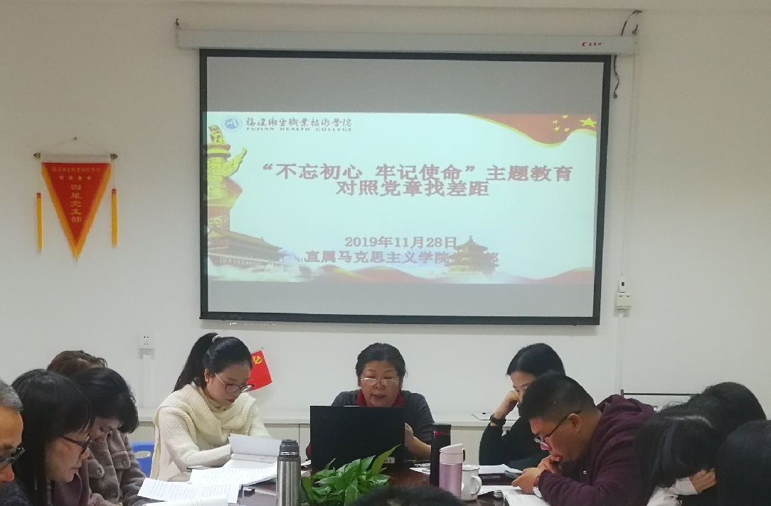 2019年11月28日上午,直屬馬克思主義學(xué)院黨支部在行政樓107會議室召開“不忘初心、牢記使命”主題教育對照黨章黨規(guī)找差距專題會議。會議由直屬馬克思主義學(xué)院黨支部書記熊美蘭主持,黨支部全體黨員參加。