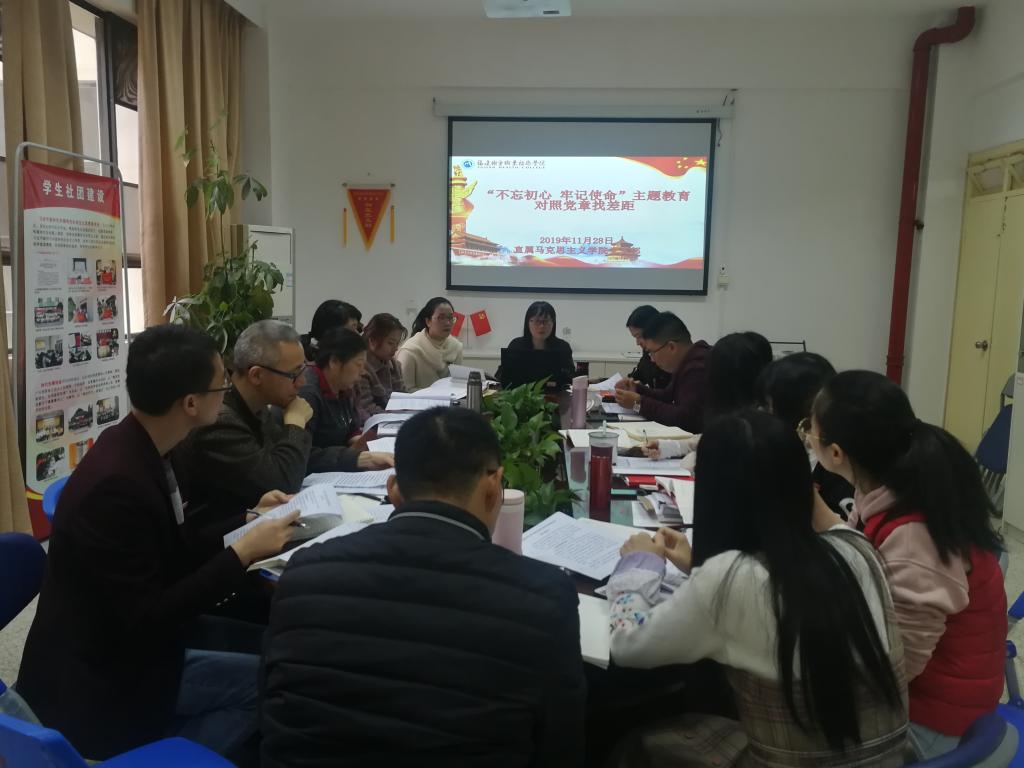 直屬馬克思主義學(xué)院黨支部召開“不忘初心、牢記使命”主題教育對照黨章黨規(guī)找差距專題會議