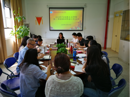 2019年10月10日上午,直屬馬克思主義學(xué)院黨支部在行政樓107會(huì)議室召開2019年第三季度意識(shí)形態(tài)工作會(huì)議。會(huì)議由直屬馬克思主義學(xué)院黨支部書記熊美蘭主持,馬克思主義學(xué)院全體教師黨員參加了此次會(huì)議。
