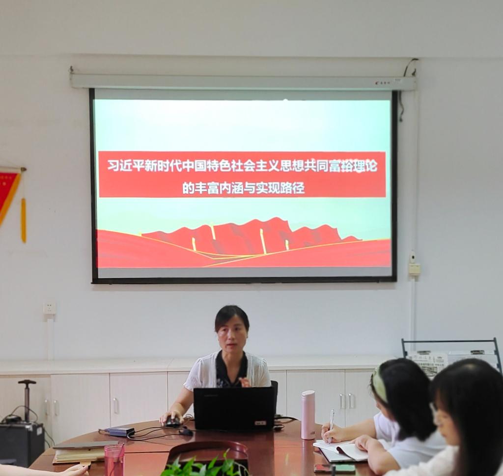 2023年6月8日,直屬馬克思主義學(xué)院黨支部副書記來朋珍同志為黨支部全體教師黨員作題為《習(xí)近平新時(shí)代中國(guó)特色社會(huì)主義思想共同富裕理論的豐富內(nèi)涵與實(shí)現(xiàn)路徑》的專題黨課。