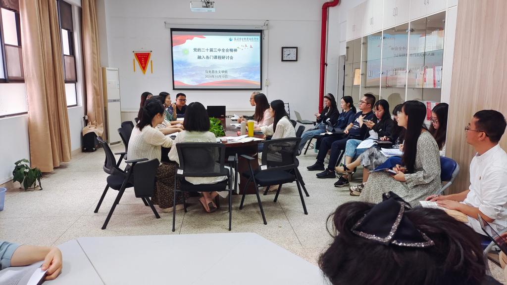 為深入學(xué)習(xí)貫徹黨的二十屆三中全會(huì)和全國(guó)教育大會(huì)精神,進(jìn)一步推動(dòng)思想政治理論課改革創(chuàng)新,2024年10月10日,馬克思主義學(xué)院在厚德樓107開展黨的二十屆三中全會(huì)、全國(guó)教育大會(huì)精神融入思政課交流研討會(huì)。