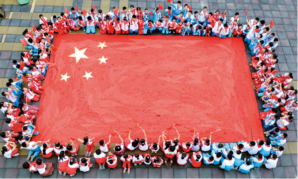 社會主義辦學方向是我國教育最鮮亮的底色,我國教育要培養(yǎng)的是社會主義建設者和接班人,這是個根本性的問題。圖為山東省沂源縣荊山路小學開展“紅領巾拼國旗祝福祖國迎國慶”活動,學生們在老師帶領下用紅領巾拼出了一面巨型國旗,表達對偉大祖國的祝福。(教育部供圖)