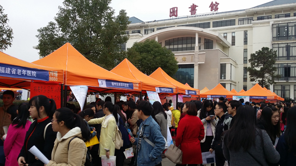 19日上午,福建衛(wèi)生職業(yè)技術(shù)學(xué)院2016屆畢業(yè)生供需見(jiàn)面會(huì)在校園圖書(shū)館前廣場(chǎng)舉行,吸引了全省各地147家醫(yī)藥衛(wèi)生單位參加,提供就業(yè)崗位3000多個(gè)。招聘會(huì)現(xiàn)場(chǎng)氣氛濃烈,人頭攢動(dòng),多家衛(wèi)生醫(yī)療單位、醫(yī)藥企業(yè)擠滿(mǎn)了咨詢(xún)的畢業(yè)生,用人單位也根據(jù)需求,閱覽畢業(yè)生簡(jiǎn)歷,與畢業(yè)生親切交流、吸引人才。學(xué)院黨委書(shū)記林春明、副院長(zhǎng)魏立娜親臨招聘會(huì)現(xiàn)場(chǎng),與企業(yè)相關(guān)負(fù)責(zé)人親切交流,了解用人單位需求,各系部黨總支書(shū)記和畢業(yè)生輔導(dǎo)員到現(xiàn)場(chǎng)與用人單位接洽溝通,為畢業(yè)生應(yīng)聘提供指導(dǎo)和服務(wù)。福建教育電視臺(tái)和海峽都市報(bào)記者對(duì)本次招聘會(huì)情況進(jìn)行了報(bào)道。