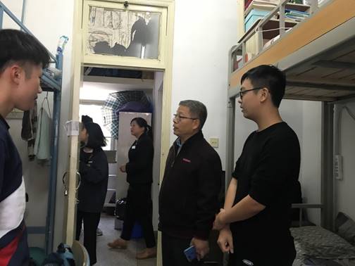 2019年12月26日下午,副校長、文明宿舍評比領(lǐng)導(dǎo)小組組長陳貞健帶領(lǐng)評比領(lǐng)導(dǎo)小組成員開展學(xué)期學(xué)生宿舍總評工作,考評的對象是本學(xué)期在宿管科、各系學(xué)生會勞動部、院學(xué)生會勞動部日常檢查評分的基礎(chǔ)上位列綜合前20名的宿舍。