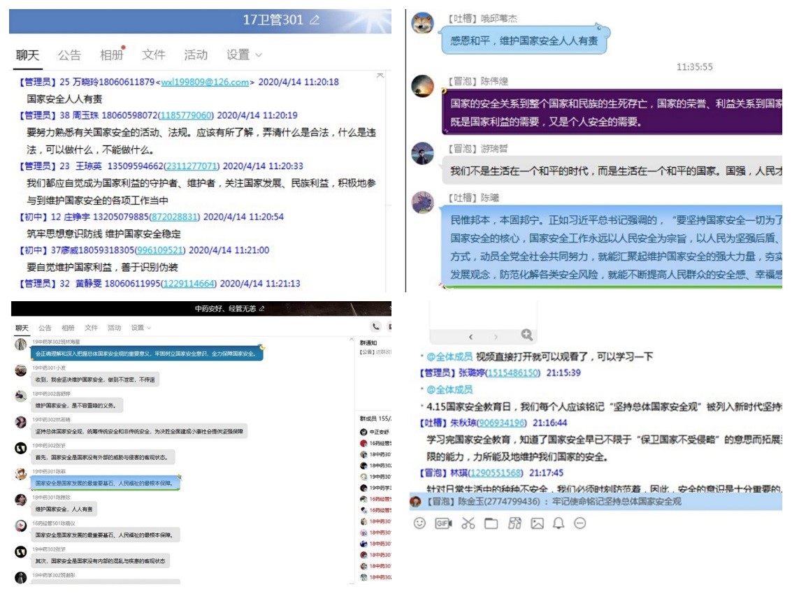 本次活動(dòng)主題為“堅(jiān)持總體國(guó)家安全觀,統(tǒng)籌傳統(tǒng)安全和非傳統(tǒng)安全,為決勝全面建成小康社會(huì)提供堅(jiān)強(qiáng)保障”。在疫情防控期間,通過(guò)“云端”班會(huì)話“安全”,使得學(xué)生進(jìn)一步加強(qiáng)了對(duì)國(guó)家安全法律法規(guī)以及相關(guān)知識(shí)的了解,牢固樹(shù)立國(guó)家安全無(wú)小事,國(guó)家安全關(guān)系你我的理念。 輔導(dǎo)員們還結(jié)合《中華人民共和國(guó)國(guó)家安全法》,《中華人民共和國(guó)網(wǎng)絡(luò)安全法》,《中華人民共和國(guó)保守國(guó)家秘密法》,《全民國(guó)家安全教育日,這些知識(shí)要知道》等內(nèi)容講解,增強(qiáng)同學(xué)們的國(guó)家安全意識(shí),自覺(jué)維護(hù)國(guó)家安全。