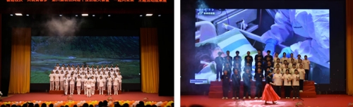 朗誦片段《少年中國(guó)說(shuō)》及大合唱《我的未來(lái)不是夢(mèng)》告訴同學(xué)們只有堅(jiān)定信心,才會(huì)圓夢(mèng);朗誦、大合唱《醫(yī)路向前—致敬最美逆行者》表達(dá)了對(duì)最美逆行者的崇高敬意。