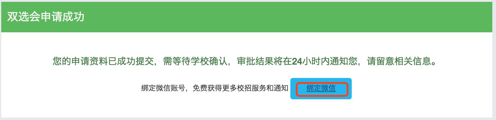 4.微信關注“云校招企業(yè)服務平臺”,并掃碼綁定微信,之后的審核結果,參會確認通知,參會二維碼都會發(fā)到微信上。