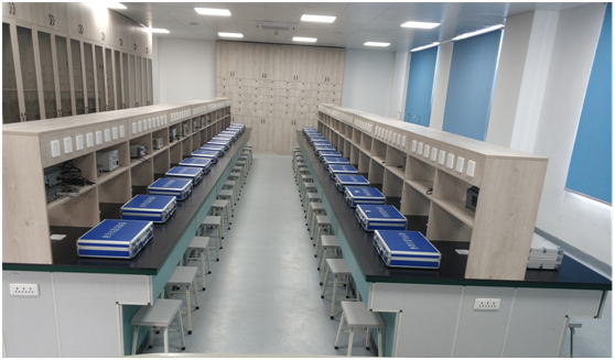 智能醫(yī)療裝備技術(shù)實(shí)訓(xùn)基地于2020年獲評福建省高水平專業(yè)化產(chǎn)教融合實(shí)訓(xùn)基地,所在專業(yè)2021年獲評福建省“雙高”建設(shè)專業(yè)群。該實(shí)訓(xùn)基地建有醫(yī)用電子儀器實(shí)訓(xùn)室、醫(yī)用電子仿真實(shí)訓(xùn)室(計(jì)算機(jī)實(shí)訓(xùn)室),配備有醫(yī)用電子線路實(shí)驗(yàn)箱、心電圖機(jī)實(shí)驗(yàn)箱、數(shù)字化醫(yī)療儀器實(shí)驗(yàn)箱、單片機(jī)開發(fā)實(shí)驗(yàn)箱、嵌入式系統(tǒng)開發(fā)實(shí)驗(yàn)箱、醫(yī)用傳感器實(shí)驗(yàn)箱、電路基礎(chǔ)實(shí)驗(yàn)箱、模擬電子技術(shù)實(shí)驗(yàn)箱、數(shù)字電子技術(shù)實(shí)驗(yàn)箱。電工職業(yè)資格考證實(shí)訓(xùn)室和1+x集成電路開發(fā)與測試實(shí)訓(xùn)室(摩爾工坊)目前正在建設(shè)中。同時可共享使用醫(yī)學(xué)影像基地、醫(yī)學(xué)檢驗(yàn)實(shí)訓(xùn)基地和眼視光技術(shù)實(shí)訓(xùn)基地之實(shí)訓(xùn)室及相關(guān)設(shè)備。