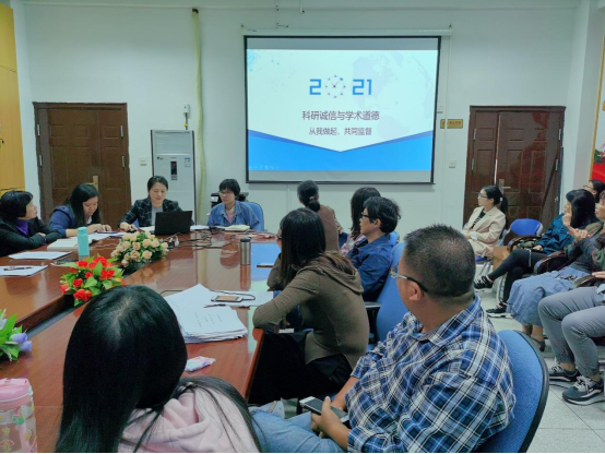為進(jìn)一步弘揚(yáng)求真務(wù)實(shí)、嚴(yán)謹(jǐn)自律的學(xué)術(shù)精神,加強(qiáng)科研誠(chéng)信建設(shè)、嚴(yán)明學(xué)術(shù)紀(jì)律、規(guī)范學(xué)術(shù)行為, 10月21日,醫(yī)學(xué)技術(shù)系組織全體教師開(kāi)展了科研誠(chéng)信與作風(fēng)學(xué)風(fēng)建設(shè)專項(xiàng)教育整治活動(dòng)學(xué)習(xí)動(dòng)員會(huì)。