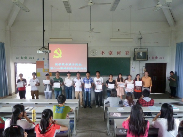 2013年6月4日中午1點,醫(yī)學技術系在系部第二階梯教室舉行分黨校第十一期培訓班結業(yè)典禮。系黨總支郭禮堅副書記、行政秘書傅衍達、系團總支黃小芳書記、郭淼麗副書記以及培訓班全體成員參加了此次結業(yè)典禮。大會由郭淼麗老師主持。