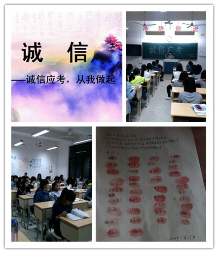 “學道存乎信,立信存乎誠”,師生們合唱歌曲《誠信》,表達了對誠信的贊美和向往,拉開了道德講堂的序幕。誠信是中華民族的傳統(tǒng)美德,孔子和陶行知等教育家的治學也以誠信為綱,同學們聲情并茂地誦讀了先賢們的諄諄教誨,理解著誠信的厚重。隨后,輔導員結(jié)合商鞅的立木為信、周幽王烽火戲諸侯的史實,通過對比說明誠信的重要性,并引導同學們以“講誠信吃虧嗎”為辯題,講述一個身邊的誠信故事。通過多方思維和經(jīng)驗的碰撞與討論,大家更深刻地理解了誠信的重要性。緊接著利用教室多媒體,師生共同觀看教育部誠信考試宣傳片,重讀學??荚囘`紀的處理規(guī)定,以規(guī)章紀律強調(diào)不誠無信的后果。最后由班委帶頭,進行集體宣誓“期末考試是檢驗我們的學習狀況,不僅是一場文化考試,也是一場道德品質(zhì)的考試,我們將誠信應(yīng)考!”,同時也以承諾書形式記錄下同學們的決心。