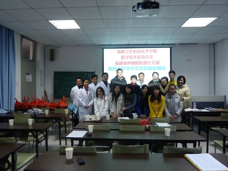 2012年1月6日下午三點,在醫(yī)學技術系黨總支洪聿榮副書記、立項負責人郭禮堅副主任的帶領下一行五人至福建省腫瘤醫(yī)院,與醫(yī)院的放療科黨支部共同舉行了黨支部立項“建立院校合作機制下學生黨員發(fā)展新模式”的項目啟動儀式。省腫瘤醫(yī)院黨辦葉阿琴主任也在百忙之中出席了本次活動。