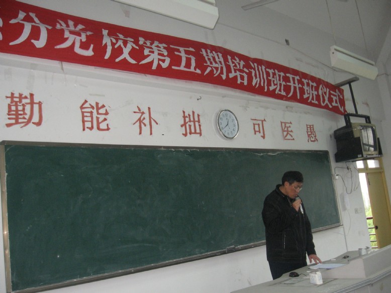 在雄壯的國歌聲中,開學典禮拉開了帷幕。首先,08影像301班林敏金同學代表全體學員發(fā)言,表達了對黨的熱愛和忠誠,積極要求向黨靠攏的熱情,以及今后學習和工作更上一層樓的決心。隨后,洪聿榮副書記發(fā)表講話,對所有參加學習的學員表示了祝賀,并強調系業(yè)余分黨校是學生入黨積極分子的培訓基地,它是以黨的基本路線為指導,以培養(yǎng)既有真才實學,又有堅定共產(chǎn)主義信念的高素質技能型人才為目的。是入黨積極分子端正入黨動機、熟悉和掌握黨的基本知識、基本理論、提高思想政治覺悟的需要,通過分黨校培訓不斷提高學生的思想政治素質,使他們能凝聚到黨的事業(yè)和隊伍中來。他希望學員們要十分珍惜這個寶貴的學習機會,端正學習態(tài)度、明確學習目的,自覺遵守各項管理制度,認真學習,勤于思考,用馬列主義、毛澤東思想、鄧小平理論和“三個代表”重要思想武裝自己的頭腦,深入貫徹落實科學發(fā)展觀。進一步堅定理想信念,端正入黨動機,明確怎樣做一名合格的共產(chǎn)黨員。要堅持理論聯(lián)系實際的學風,在生活、學習和工作中要自覺用共產(chǎn)黨員的標準嚴格要求自己,志存高遠,珍惜時光,不斷提高政治覺悟和思想素質,嚴格遵守校規(guī)校紀,在各個方面成為學生中的楷模和標兵。