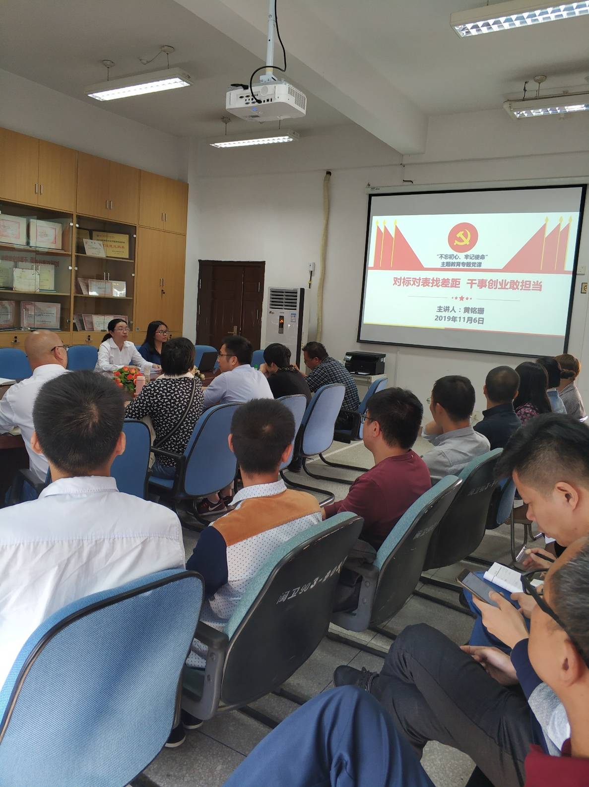 2019116日,學(xué)院黨委委員、副院長黃銘珊同志蒞臨醫(yī)學(xué)技術(shù)系,以《對標(biāo)對表找差距 干事創(chuàng)業(yè)敢擔(dān)當(dāng)》為題,在醫(yī)學(xué)技術(shù)系會議室講授主題教育專題黨課。醫(yī)學(xué)技術(shù)系黨總支負(fù)責(zé)人邱滾忠同志主持黨課,醫(yī)學(xué)技術(shù)系全體教職工到場聆聽,學(xué)院辦公室、保衛(wèi)處、繼續(xù)教育中心負(fù)責(zé)人等到場共同學(xué)習(xí)。