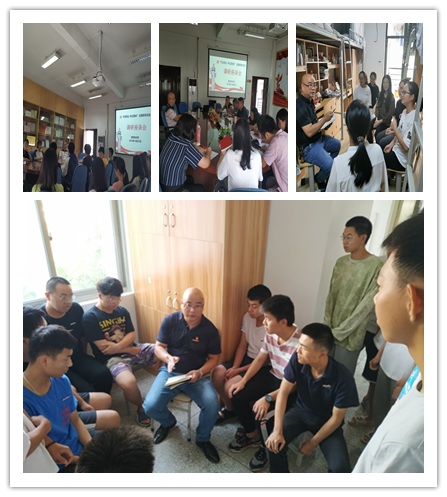 (圖為邱滾忠同團學干部、輔導員、宿舍學生等座談 )