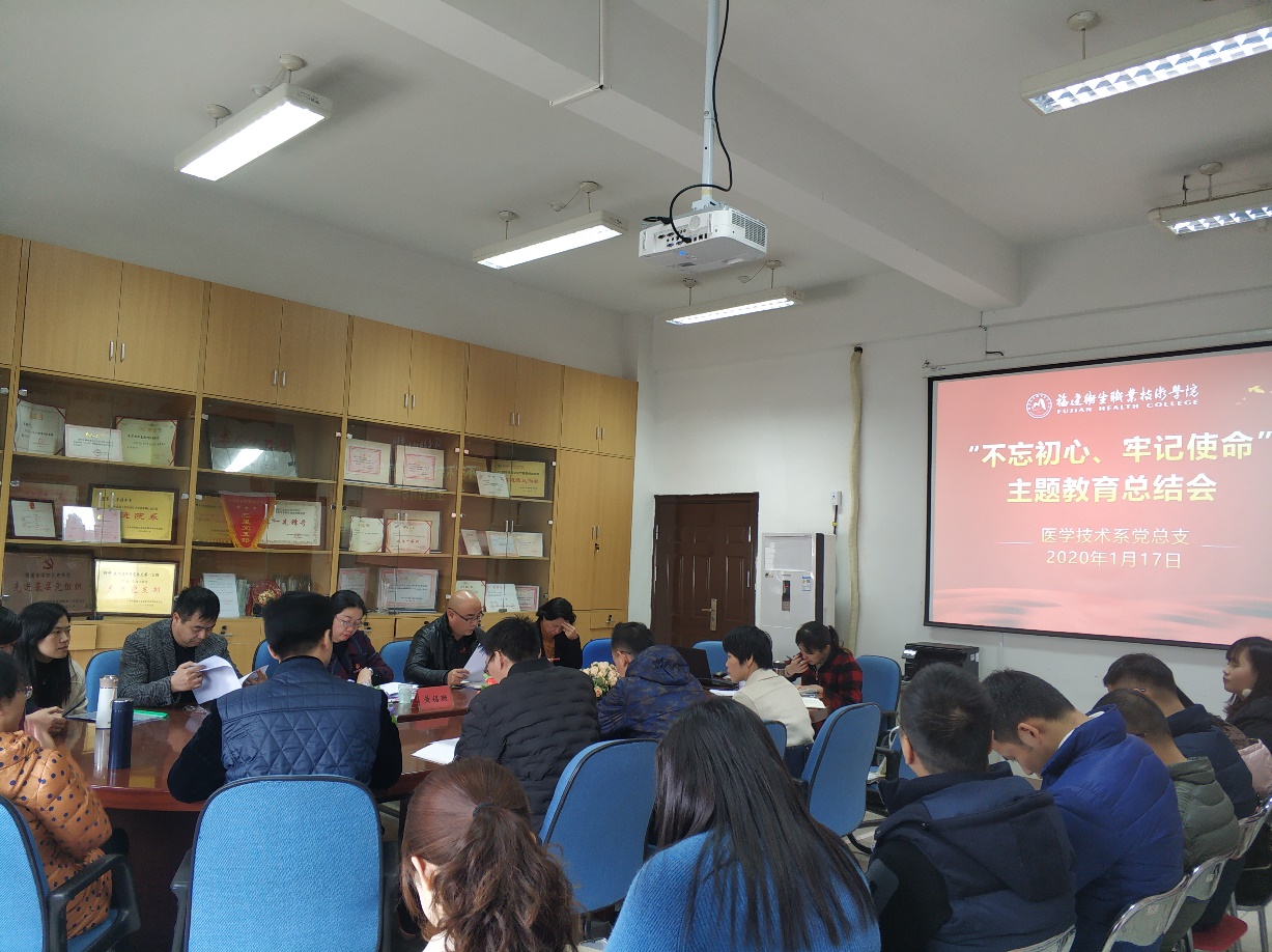 為進一步學(xué)習(xí)貫徹習(xí)近平總書記在“不忘初心、牢記使命”主題教育總結(jié)大會重要講話精神,鞏固深化主題教育成果,醫(yī)學(xué)技術(shù)系黨總支于2020年1月17日下午召開“不忘初心、牢記使命”主題教育總結(jié)大會。學(xué)校第六巡回指導(dǎo)小組組長、校黨委委員、副校長黃銘珊同志蒞會指導(dǎo)。會議由醫(yī)學(xué)技術(shù)系黨總支負責(zé)人邱滾忠同志主持,醫(yī)學(xué)技術(shù)領(lǐng)導(dǎo)班子、全體黨員教師參加會議。