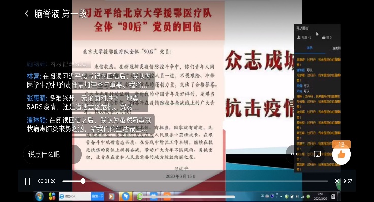 何旭春和過(guò)丹丹老師結(jié)合習(xí)近平總書記315日給北京大學(xué)援鄂醫(yī)療隊(duì)全體“90后”黨回信,引導(dǎo)學(xué)生展開(kāi)討論,要以先進(jìn)醫(yī)務(wù)工作者為榜樣,努力積攢本領(lǐng),茁壯成長(zhǎng)。青春之美,正是奮斗之美;青年之快樂(lè),正是奉獻(xiàn)之快樂(lè)。