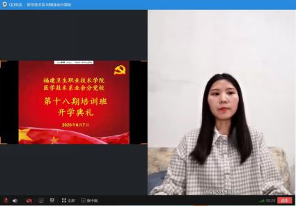 202067日,醫(yī)學(xué)技術(shù)系舉行第十八期業(yè)余分黨校培訓(xùn)班開班儀式。本次開班通過網(wǎng)絡(luò)平臺線上開展,醫(yī)學(xué)技術(shù)系黨總支負(fù)責(zé)人邱滾忠老師,第一黨支部書記林雪金老師、第二黨支部書記鐘偉雄老師、學(xué)生黨支部書記黃玲云老師,以及97名學(xué)員共同參加本次開班儀式。本次開班由18檢驗302班江鵬同學(xué)主持。
