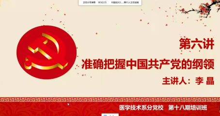 6月13日晚上,醫(yī)學(xué)技術(shù)系第十八期業(yè)余分黨校培訓(xùn)班第四課開講,馬克思主義學(xué)院胡濟(jì)林老師擔(dān)任此次課程的主講人。本次課程的主題是“科學(xué)理解中國共產(chǎn)黨的指導(dǎo)思想”。他為學(xué)員們深入講解了馬克思列寧主義的產(chǎn)生和發(fā)展、毛澤東思想以及中國特色社會主義理論體系,并著重闡述了如何學(xué)習(xí)貫徹習(xí)近平新時(shí)代中國特色社會主義思想。授課中,胡濟(jì)林老師還結(jié)合抗擊疫情的階段性成果,引導(dǎo)學(xué)員們深入認(rèn)識中國特色社會主義的巨大優(yōu)越性,進(jìn)一步堅(jiān)定跟黨走的信念。