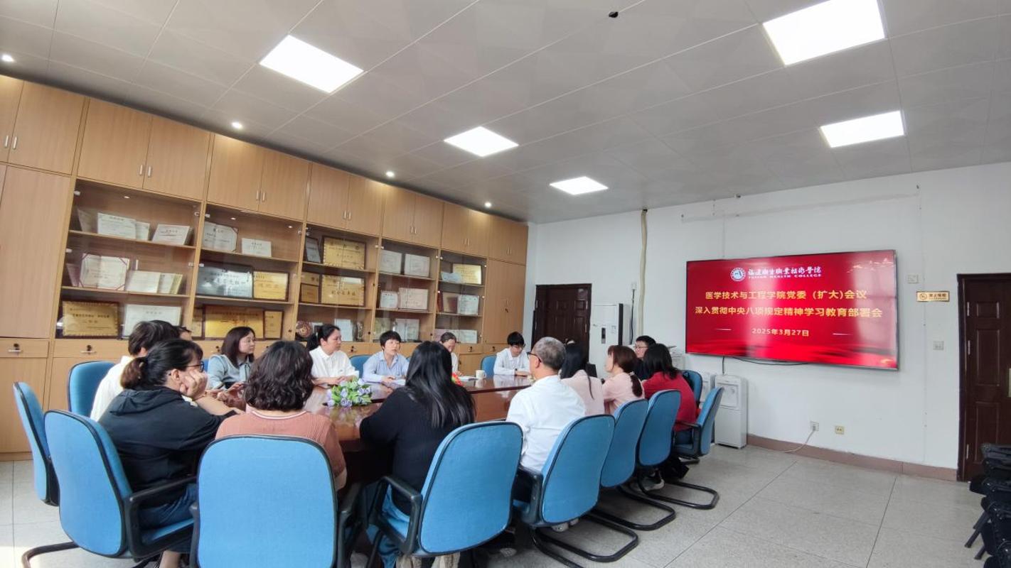 會(huì)議組織學(xué)習(xí)《中共中央政治局關(guān)于改進(jìn)工作作風(fēng)、密切聯(lián)系群眾的八項(xiàng)規(guī)定》,研究通過《中共福建衛(wèi)生職業(yè)技術(shù)學(xué)院醫(yī)學(xué)技術(shù)與工程學(xué)院委員會(huì)深入貫徹中央八項(xiàng)規(guī)定精神學(xué)習(xí)教育的實(shí)施方案》。