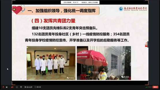 黃銘珊副院長還介紹了學院認真貫徹疫情防控工作要求,打響疫情防控的主動戰(zhàn)的各項工作情況。她特別和同學們分享交流了馳援武漢奮戰(zhàn)一線的優(yōu)秀校友事跡、校友企業(yè)捐贈防疫物資、黨員師生防疫行動情況,以及我們學校青年學子主動投身社區(qū)(鄉(xiāng)村)一線防疫服務(wù)的情況。