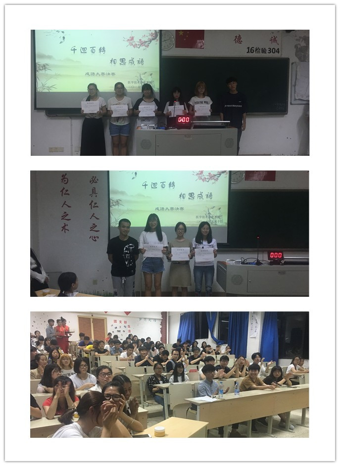 為豐富學(xué)生校園生活,營(yíng)造文化氛圍,促進(jìn)學(xué)生傳統(tǒng)文化交流,2017年5月10日,醫(yī)學(xué)技術(shù)系學(xué)習(xí)部于教學(xué)樓314教室開(kāi)展了“千迴百轉(zhuǎn),相思成語(yǔ)”成語(yǔ)大賽。