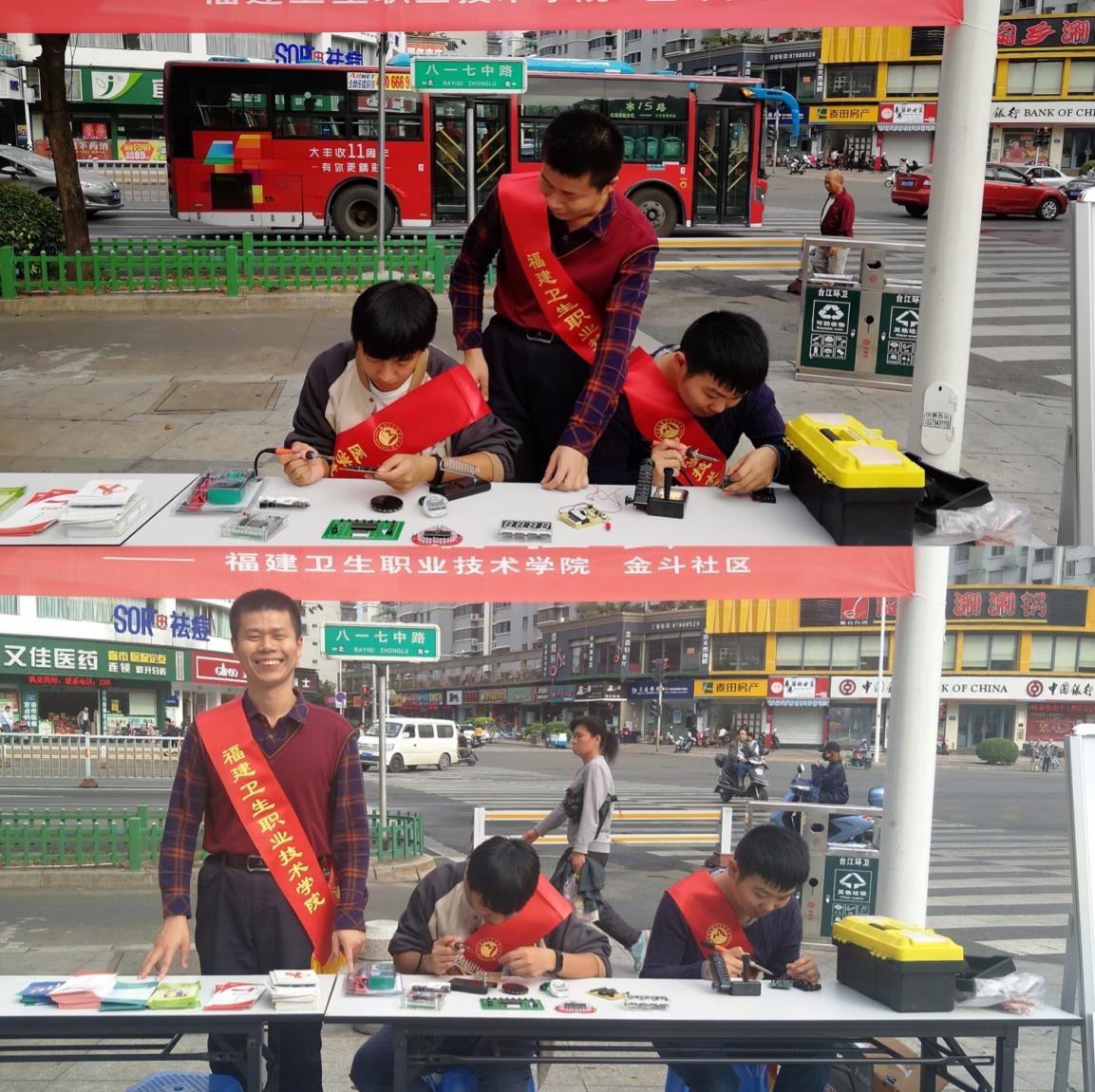 為弘揚“勞動光榮、技能寶貴、創(chuàng)造偉大”的時代風尚,積極響應十九大號召,充分展示我院辦學特色和成果、發(fā)揮我院醫(yī)學職業(yè)技能優(yōu)勢,體現(xiàn)高校教師黨員服務社會的作用,醫(yī)學技術(shù)系醫(yī)學影像技術(shù)專業(yè)、醫(yī)療設備應用技術(shù)專業(yè)的黨員教師和學生干部于20171116日前往福州市金斗社區(qū)進行系列職教活動,活動內(nèi)容包括:防艾滋病主題宣傳、超聲檢查義診活動及醫(yī)療家用電子儀器免費維修活動。