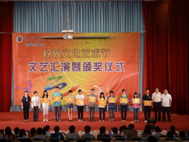 醫(yī)學技術系文化藝術節(jié)暨頒獎典禮于2012年5月8日晚在學術廳隆重舉行。學院領導嚴肅書記、魏立娜副院長、檢驗專業(yè)特聘教授葉晨主任、福州金域醫(yī)學檢驗中心江真君經(jīng)理、學工處黃銘珊處長、教務處莊海林副處長、醫(yī)學技術系馬少寧主任、洪聿榮副書記、郭禮堅副主任、魏碧娜副主任、院團委宋維副書記、王燁老師,以及各班輔導員、兄弟系部團總書記等應邀參加了此次文藝演出。