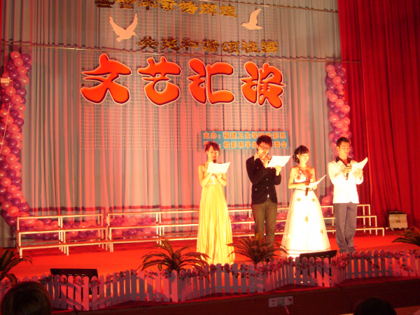 為豐富校園文化生活,陶冶同學(xué)們的藝術(shù)情操,檢驗(yàn)影像系于2009年5月21日在學(xué)術(shù)廳隆重舉行“盛世華章鑄輝煌,共建和諧頌祖國(guó)”文藝晚會(huì)。黃開(kāi)良副院長(zhǎng)、學(xué)工處鄭力宏處長(zhǎng)、院團(tuán)委邱滾忠書記、檢驗(yàn)影像系馬少寧主任、洪聿榮書記、郭禮堅(jiān)副主任以及各班輔導(dǎo)員、兼職班主任出席了本次晚會(huì)。 晚上6:30, 一曲《十送紅軍》正式拉開(kāi)文藝晚會(huì)的序幕。今年是建國(guó)60周年,六十年風(fēng)雨兼程鑄就強(qiáng)盛的中國(guó),六十載勵(lì)精圖治共創(chuàng)世紀(jì)的輝煌,《十送紅軍》情真意切,唱出了軍民魚水情。整臺(tái)晚會(huì)節(jié)目新穎多樣、內(nèi)容積極向上,學(xué)術(shù)廳里無(wú)不洋溢著歡樂(lè)的氣氛。有剛勁有力的功夫扇《中國(guó)功夫》,舞姿翩翩的扇子舞《青花瓷》、樸素灑脫的苗族竹竿舞和火暴的勁舞《No Body》。相聲《庸醫(yī)》、小品《我像誰(shuí)》、《梁?!凡粫r(shí)引起場(chǎng)下陣陣笑聲。歌曲串燒《歌舞青春》、男女合唱《流星下的愿》、獨(dú)唱《他不愛(ài)我》、歌伴舞《說(shuō)唱臉譜》也為晚會(huì)增色不少。傳統(tǒng)中國(guó)茶藝表演《茶韻》、環(huán)保時(shí)裝走秀《Over the rainbow》、氣勢(shì)磅礴的詩(shī)朗誦《這片山河,這個(gè)時(shí)代》將氣氛一次又一次地推向高潮。最后,晚會(huì)在健美操《Trance Mix》中落下了帷幕。 整場(chǎng)晚會(huì)通過(guò)輕松活潑的節(jié)目,獨(dú)特新穎的創(chuàng)意,充分展示了新一代大學(xué)生多才多藝、富有朝氣;展現(xiàn)出青春活力、健康向上的校園文化精神。